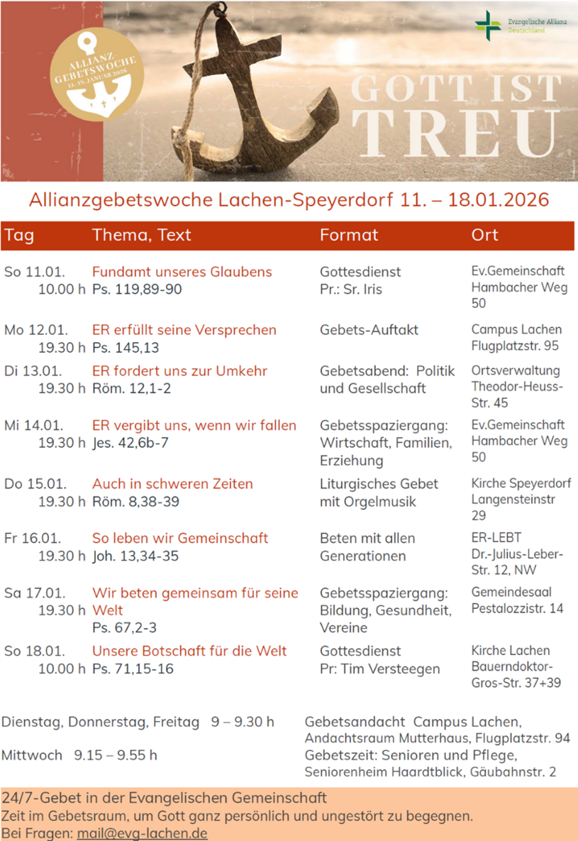 In Lachen-Speyerdorf gestalten die Evangelische Gemeinschaft, das Diakonissen-Mutterhaus und die protestantische Kirchengemeinde diese Woche.