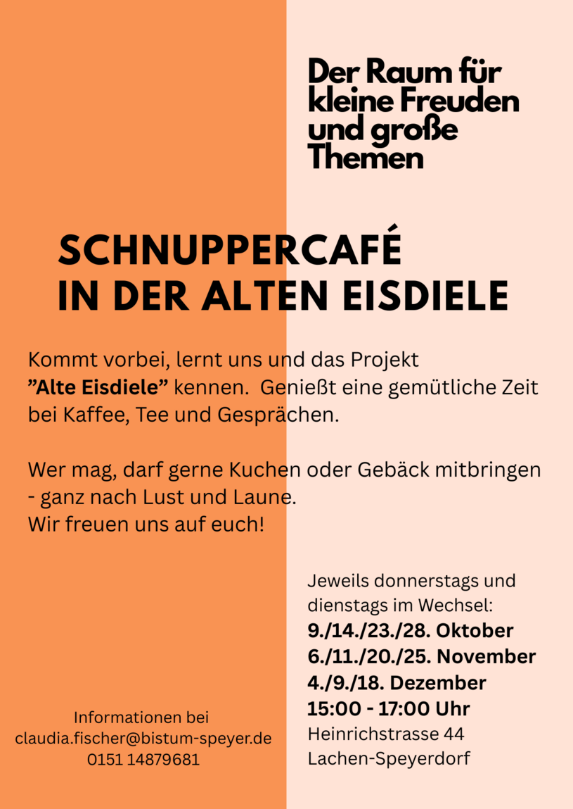 Die „Alte Eisdiele“ in Lachen-Speyerdorf ist ein neues Pionierprojekt des Bistums Speyer. Dort entsteht ein offener Begegnungsraum für Menschen in Übergangs- und Umbruchsphasen des Lebens – ob jung oder alt, nach Abschieden, Neuanfängen oder in Zeiten der Einsamkeit.